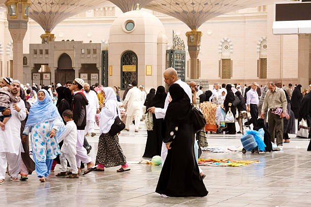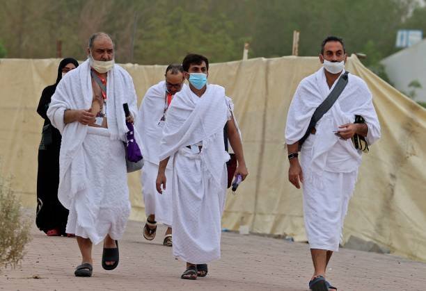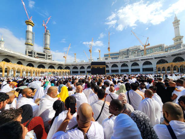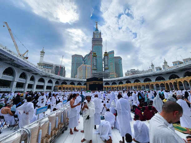 Ihram: Pilgrims enter the state of ihram by donning the prescribed clothing (white, seamless garments for men) and observing specific restrictions.